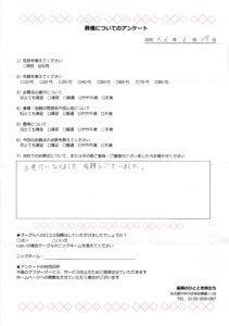 2025/04/08 Scan2025-04-08_132010 無料で今すぐ相談する 葬儀・家族葬に関する疑問やお悩みは、お気軽にご相談ください。 ご相談・お問合わせ・お見積もりは無料です。 最期のひととき旅立ちまでお気軽にお問い合わせください。 葬儀・家族葬のご相談はこちら >> 無料で今すぐ相談する 葬儀・家族葬に関する疑問やお悩みは、お気軽にご相談ください。 ご相談・お問合わせ・お見積もりは無料です。 最期のひととき旅立ちまでお気軽にお問い合わせください。 葬儀・家族葬のご相談はこちら >> ≪ひとつ古い記事へ