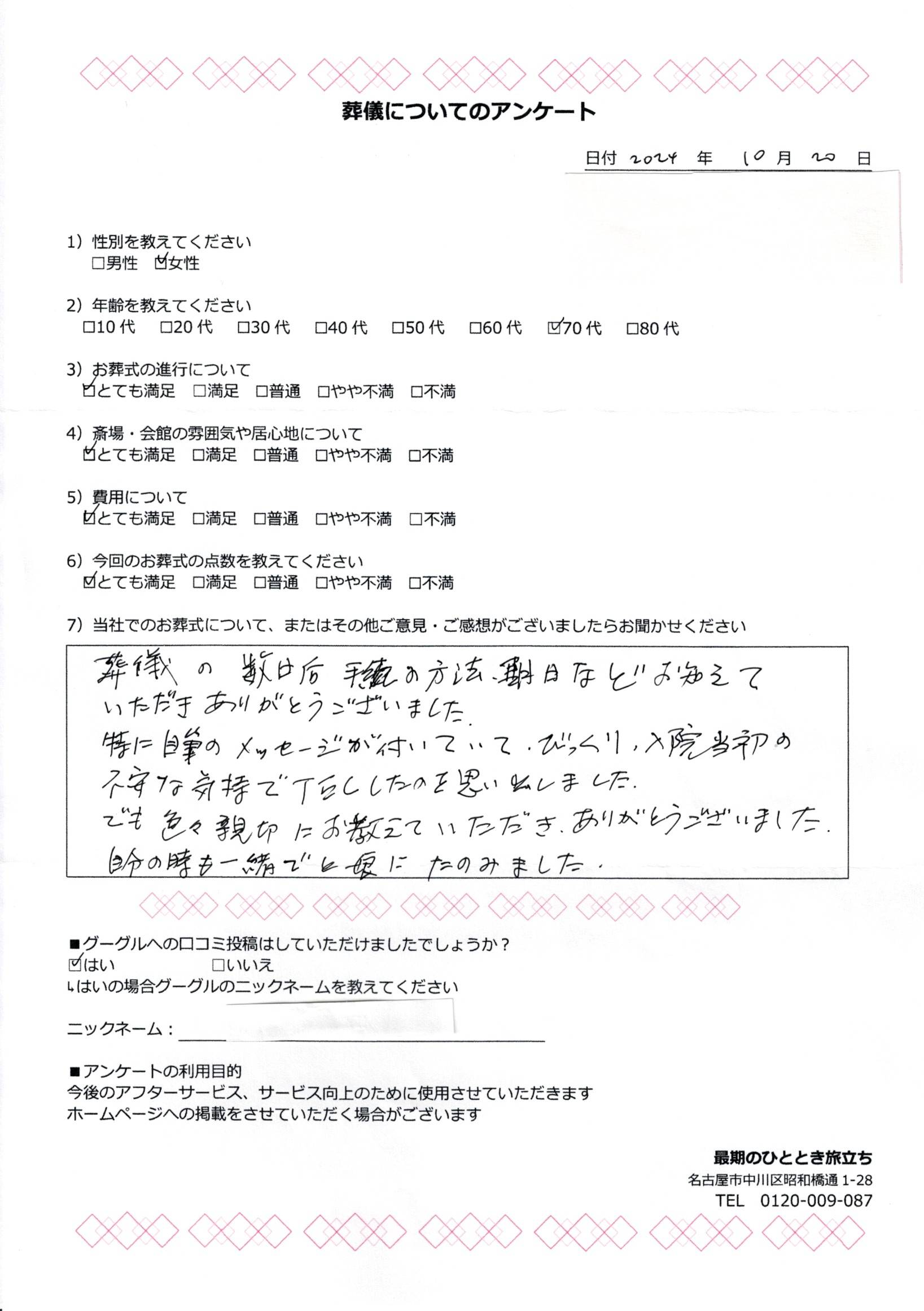2025/04/15 Scan2025-04-15_164910 無料で今すぐ相談する 葬儀・家族葬に関する疑問やお悩みは、お気軽にご相談ください。 ご相談・お問合わせ・お見積もりは無料です。 最期のひととき旅立ちまでお気軽にお問い合わせください。 葬儀・家族葬のご相談はこちら >> 無料で今すぐ相談する 葬儀・家族葬に関する疑問やお悩みは、お気軽にご相談ください。 ご相談・お問合わせ・お見積もりは無料です。 最期のひととき旅立ちまでお気軽にお問い合わせください。 葬儀・家族葬のご相談はこちら >> ≪ひとつ古い記事へ
