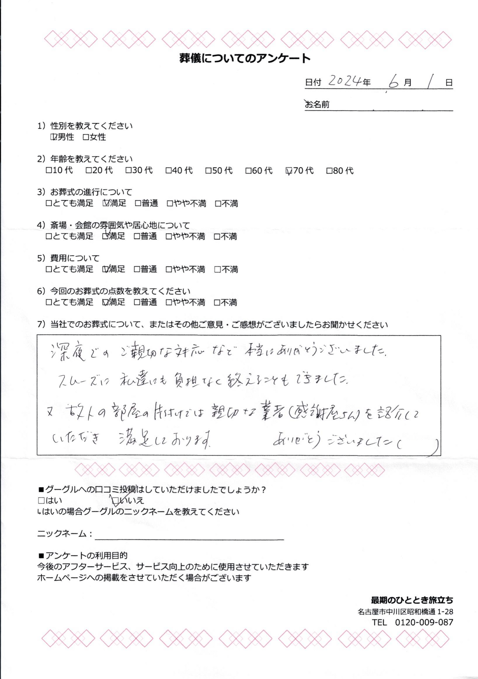2025/01/17 voice03 無料で今すぐ相談する 葬儀・家族葬に関する疑問やお悩みは、お気軽にご相談ください。 ご相談・お問合わせ・お見積もりは無料です。 最期のひととき旅立ちまでお気軽にお問い合わせください。 葬儀・家族葬のご相談はこちら >> 無料で今すぐ相談する 葬儀・家族葬に関する疑問やお悩みは、お気軽にご相談ください。 ご相談・お問合わせ・お見積もりは無料です。 最期のひととき旅立ちまでお気軽にお問い合わせください。 葬儀・家族葬のご相談はこちら >> ≪ひとつ古い記事へ