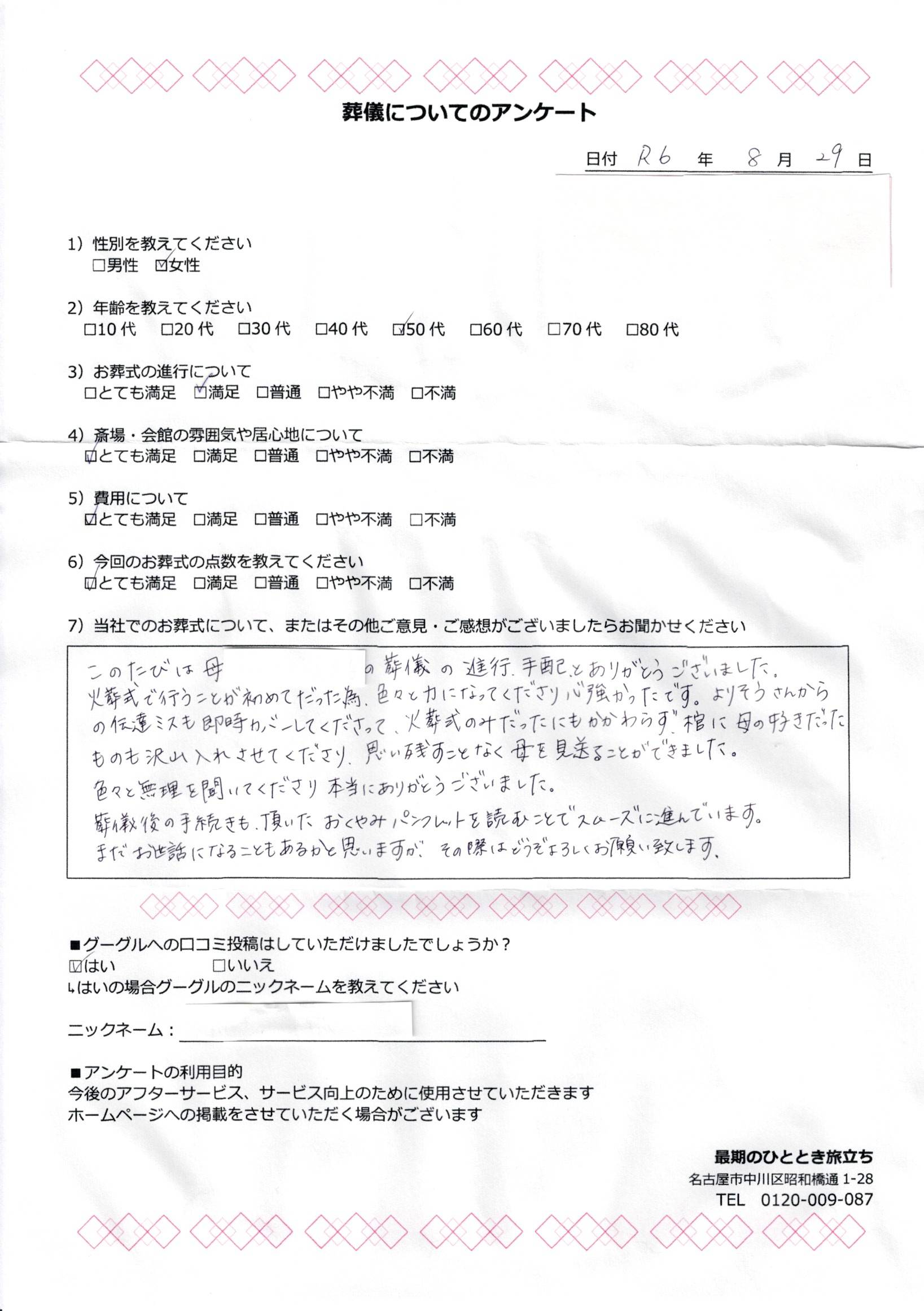 2025/04/08 Scan2025-04-08_182718 無料で今すぐ相談する 葬儀・家族葬に関する疑問やお悩みは、お気軽にご相談ください。 ご相談・お問合わせ・お見積もりは無料です。 最期のひととき旅立ちまでお気軽にお問い合わせください。 葬儀・家族葬のご相談はこちら >> 無料で今すぐ相談する 葬儀・家族葬に関する疑問やお悩みは、お気軽にご相談ください。 ご相談・お問合わせ・お見積もりは無料です。 最期のひととき旅立ちまでお気軽にお問い合わせください。 葬儀・家族葬のご相談はこちら >> ≪ひとつ古い記事へ