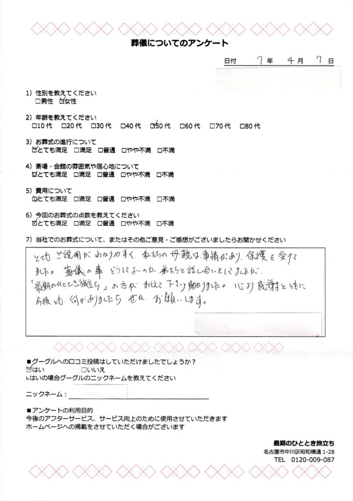 とてもご説明がわかりやすく、私たちの母親は事情があり、保護を受けて