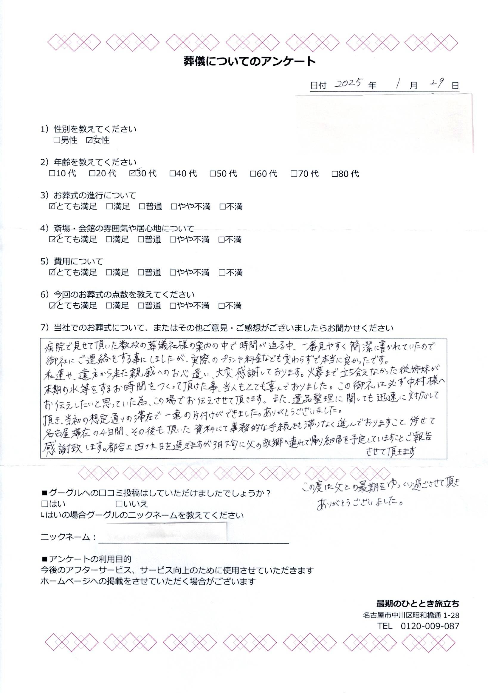 2025/04/22 Scan2025-04-22_182147 無料で今すぐ相談する 葬儀・家族葬に関する疑問やお悩みは、お気軽にご相談ください。 ご相談・お問合わせ・お見積もりは無料です。 最期のひととき旅立ちまでお気軽にお問い合わせください。 葬儀・家族葬のご相談はこちら >> 無料で今すぐ相談する 葬儀・家族葬に関する疑問やお悩みは、お気軽にご相談ください。 ご相談・お問合わせ・お見積もりは無料です。 最期のひととき旅立ちまでお気軽にお問い合わせください。 葬儀・家族葬のご相談はこちら >> ≪ひとつ古い記事へ