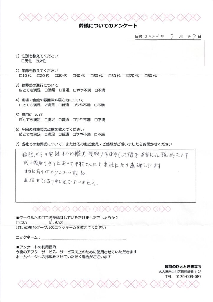 最期のひととき旅立ちまでお気軽にお問い合わせください。