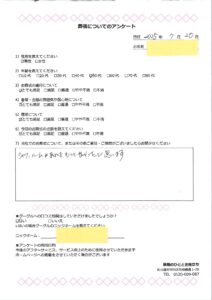 2025/08/04 20250804161839 無料で今すぐ相談する 葬儀・家族葬に関する疑問やお悩みは、お気軽にご相談ください。 ご相談・お問合わせ・お見積もりは無料です。 最期のひととき旅立ちまでお気軽にお問い合わせください。 葬儀・家族葬のご相談はこちら >> 無料で今すぐ相談する 葬儀・家族葬に関する疑問やお悩みは、お気軽にご相談ください。 ご相談・お問合わせ・お見積もりは無料です。 最期のひととき旅立ちまでお気軽にお問い合わせください。 葬儀・家族葬のご相談はこちら >> ≪ひとつ古い記事へ
