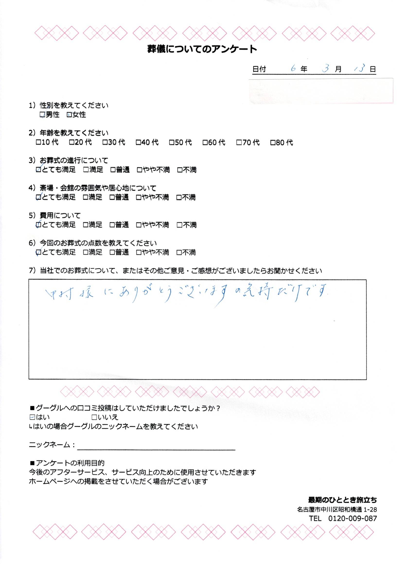 2025/04/29 50【港区】80代男性 無料で今すぐ相談する 葬儀・家族葬に関する疑問やお悩みは、お気軽にご相談ください。 ご相談・お問合わせ・お見積もりは無料です。 最期のひととき旅立ちまでお気軽にお問い合わせください。 葬儀・家族葬のご相談はこちら >> 無料で今すぐ相談する 葬儀・家族葬に関する疑問やお悩みは、お気軽にご相談ください。 ご相談・お問合わせ・お見積もりは無料です。 最期のひととき旅立ちまでお気軽にお問い合わせください。 葬儀・家族葬のご相談はこちら >> ≪ひとつ古い記事へ