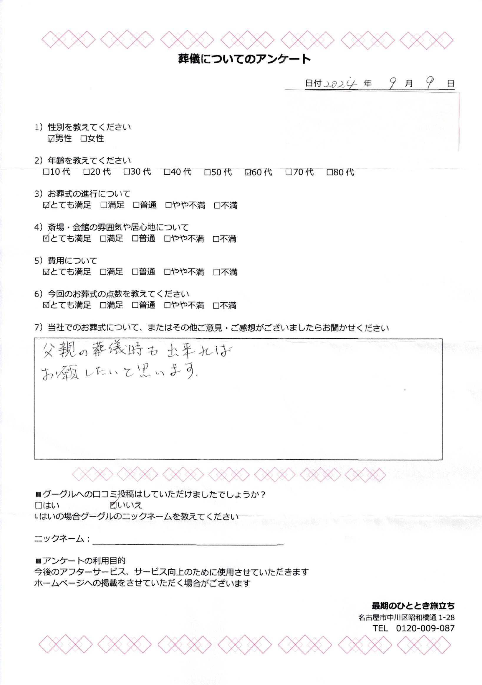 2025/04/08 Scan2025-04-08_184025 無料で今すぐ相談する 葬儀・家族葬に関する疑問やお悩みは、お気軽にご相談ください。 ご相談・お問合わせ・お見積もりは無料です。 最期のひととき旅立ちまでお気軽にお問い合わせください。 葬儀・家族葬のご相談はこちら >> 無料で今すぐ相談する 葬儀・家族葬に関する疑問やお悩みは、お気軽にご相談ください。 ご相談・お問合わせ・お見積もりは無料です。 最期のひととき旅立ちまでお気軽にお問い合わせください。 葬儀・家族葬のご相談はこちら >> ≪ひとつ古い記事へ