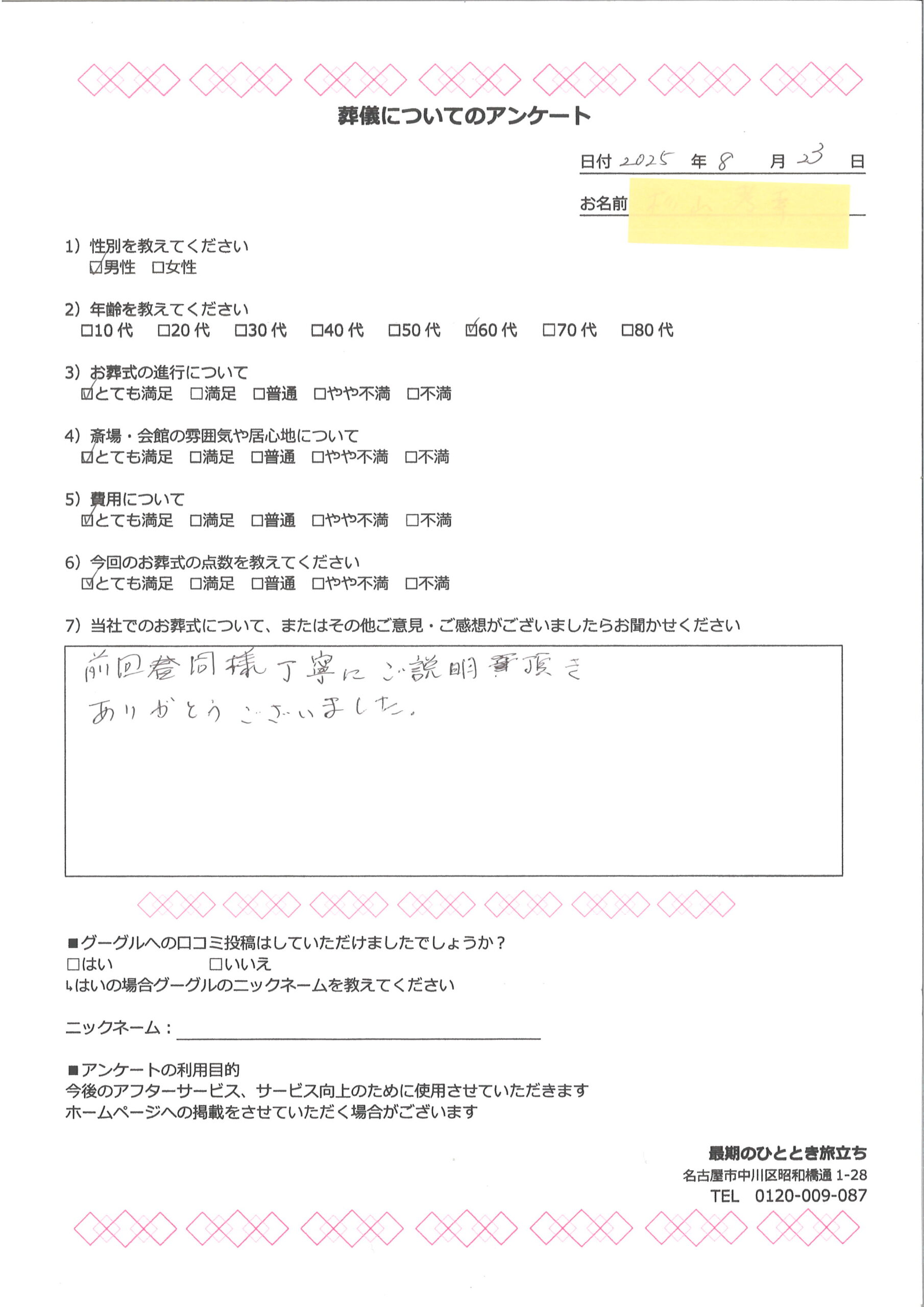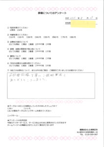 2025/10/07 20251006162227_00001 無料で今すぐ相談する 葬儀・家族葬に関する疑問やお悩みは、お気軽にご相談ください。 ご相談・お問合わせ・お見積もりは無料です。 最期のひととき旅立ちまでお気軽にお問い合わせください。 葬儀・家族葬のご相談はこちら >> 無料で今すぐ相談する 葬儀・家族葬に関する疑問やお悩みは、お気軽にご相談ください。 ご相談・お問合わせ・お見積もりは無料です。 最期のひととき旅立ちまでお気軽にお問い合わせください。 葬儀・家族葬のご相談はこちら >> ≪ひとつ古い記事へ