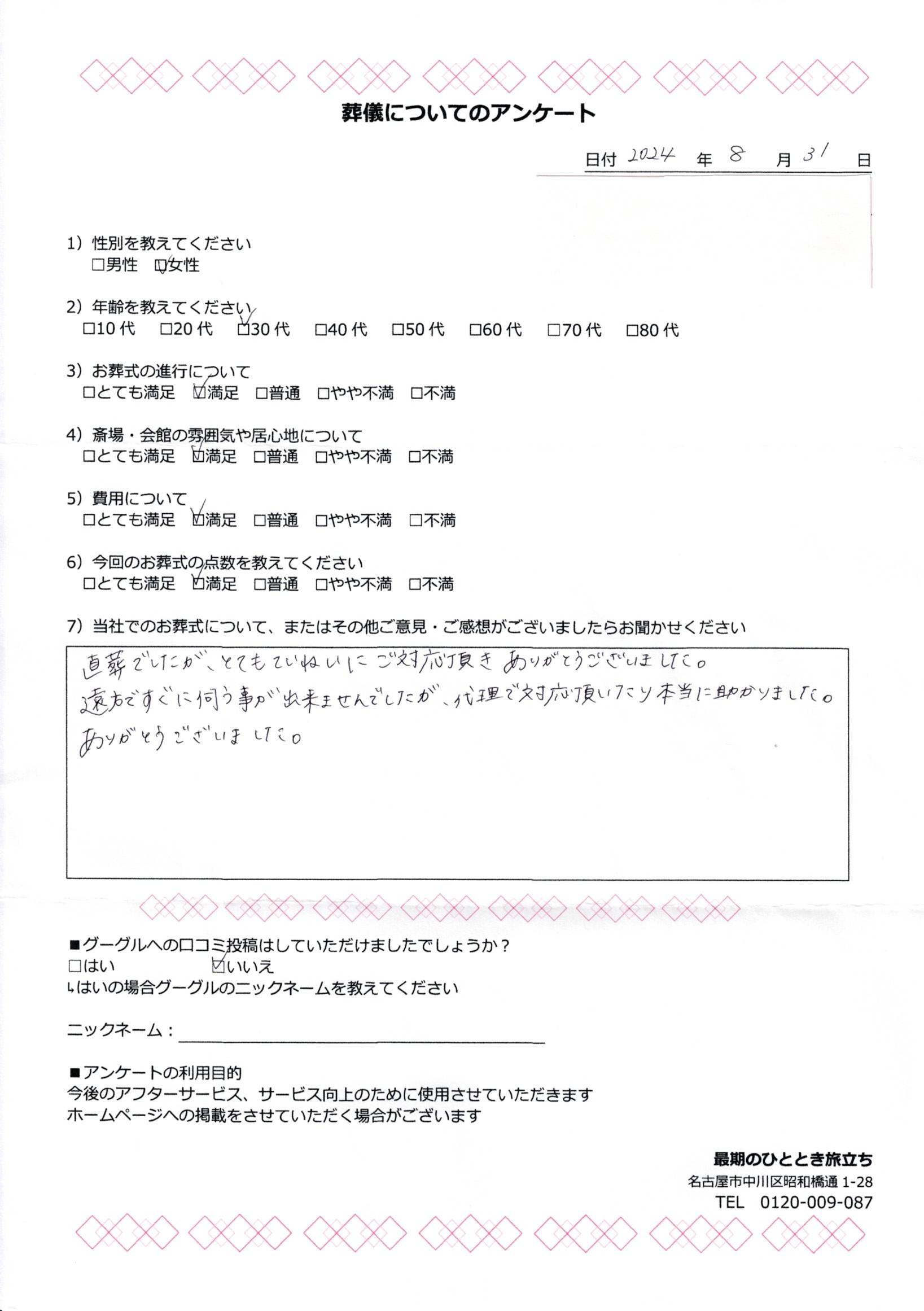 2025/04/08 Scan2025-04-08_183503 無料で今すぐ相談する 葬儀・家族葬に関する疑問やお悩みは、お気軽にご相談ください。 ご相談・お問合わせ・お見積もりは無料です。 最期のひととき旅立ちまでお気軽にお問い合わせください。 葬儀・家族葬のご相談はこちら >> 無料で今すぐ相談する 葬儀・家族葬に関する疑問やお悩みは、お気軽にご相談ください。 ご相談・お問合わせ・お見積もりは無料です。 最期のひととき旅立ちまでお気軽にお問い合わせください。 葬儀・家族葬のご相談はこちら >> ≪ひとつ古い記事へ