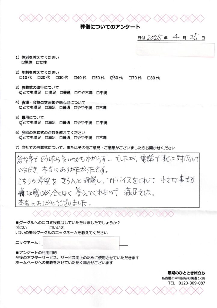 急な事でどうしたら良いのかわからず…でしたが、電話ですぐに対応して